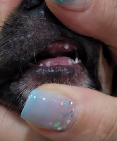 - 유치가 빠지고 난 뒤에 영구치가 자라게 되는데, 유치의 뿌리가 녹지 않아 유치와 함께 남아있는 이를 잔존 유치라고 한다. 유치가 제대로 빠지지 않아 영구치가 제대로 된 방향으로 나오지 않아 결국에는 잇몸을 뚫고 나와버리게 된다. 특히 두상이 작은 단두종 또는 소형견은 잔존 유치가 남아 있을 가능성이 매우 높다. 소형견의 경우에 몸무게가 3kg 이하라면 1년까지도 이갈이를 하며 영구치가 자라는 경우가 종종 발생한다. 잔존 유치의 경우에 마취 후에 발치를 진행해야 하기 때문에 중성화 수술이나 마취를 진행할 때 함께 발치를 하는 것이 좋다.